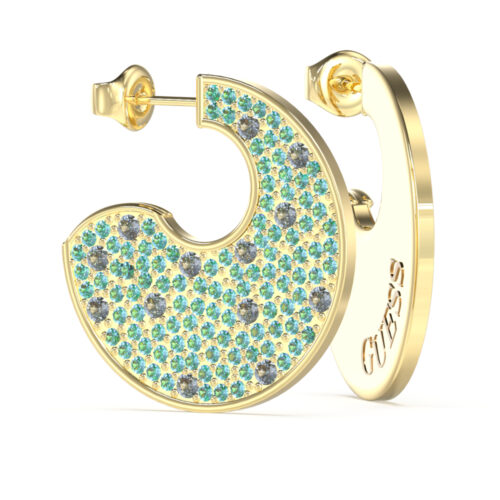 GUESS STEEL BLOOMING SUMMER JUBE05230JWYGAQT/U Σκουλαρίκια Χρυσά Με Γαλάζιες Πέτρες Και Λογότυπο