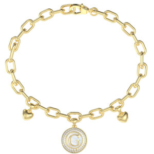 GUESS STEEL G TALISMAN Βραχιόλι Χρυσό Με Καρδιές Και Λογότυπο Με Πέτρες SKU JUBB06197JWYGL