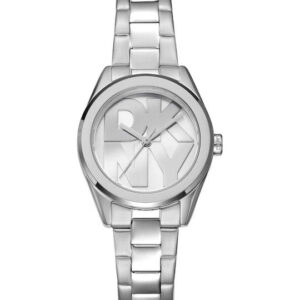 DKNY Logo Γυναικείο Ρολόι Μπαταρίας με Ασημί Μεταλλικό Μπρασελέ