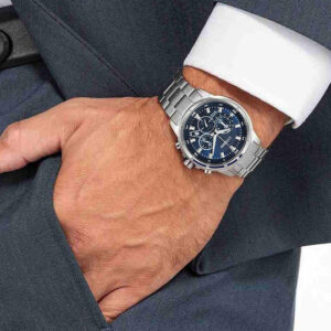 Citizen Ανδρικό Ρολόι 43mm Χρονογράφος Eco – Drive με Ασημί Μεταλλικό Μπρασελέ