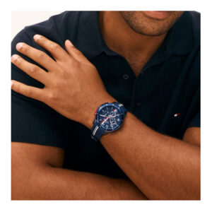 Tommy Hilfiger Bank Ανδρικό Ρολόι Χρονογράφος Μπαταρίας με Μπλε Καουτσούκ SKU 1792169Λουράκι SKU