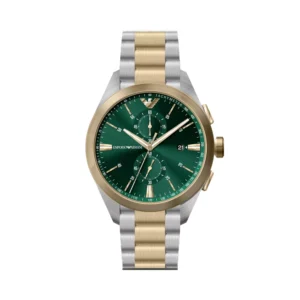 Emporio Armani Ανδρικό Ρολόι 43mm Χρονογράφος Μπαταρίας με Μεταλλικό Μπρασελέ Χρυσό/Ασημί