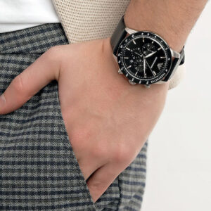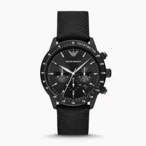 Emporio Armani Ανδρικό Ρολόι 43mm Χρονογράφος Μπαταρίας με Μαύρο Δερμάτινο Λουράκι