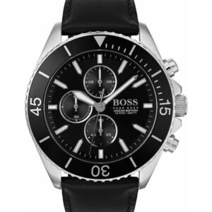 Boss Ρολόι Ocean Edition Χρονογράφος με Δερμάτινο Λουράκι σε Μαύρο χρώμα