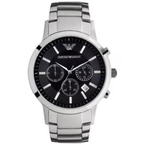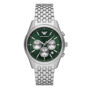 Emporio Armani Ανδρικό Ρολόι 43mm Χρονογράφος Μπαταρίας με Ασημί Μεταλλικό Μπρασελέ