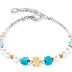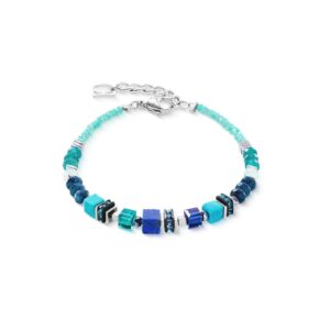 COEUR de LION Βραχιόλι GeoCUBE® Wave Precious Flow silver-teal, Stainless Steel SKU 3046/30-0607