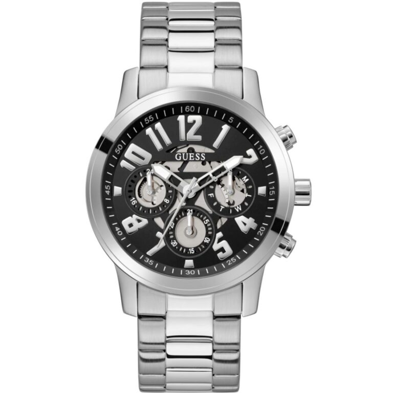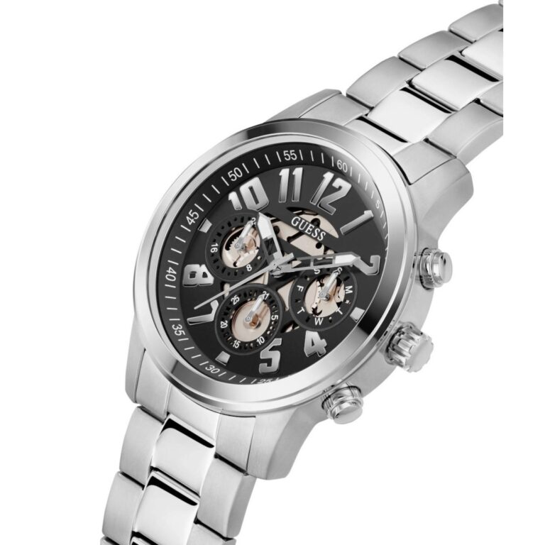 Guess Ανδρικό Ρολόι 44mm Χρονογράφος Μπαταρίας με Ασημί Μεταλλικό Μπρασελέ