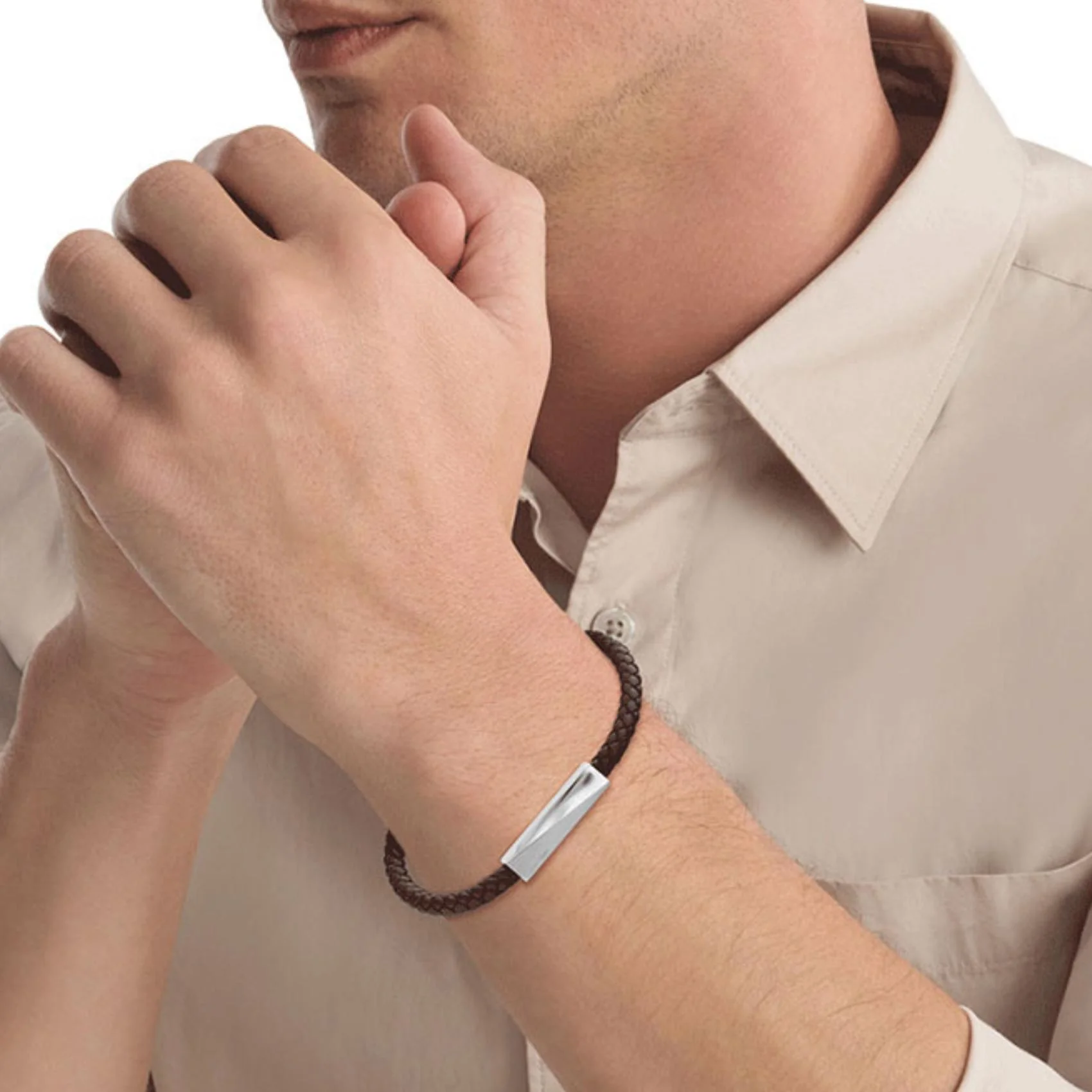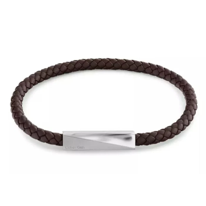Ανδρικό δερμάτινο βραχιόλι Calvin Klein 35100064 σε καφέ χρώμα με πλεκτό σχέδιο. Το μήκος του βραχιολιού είναι στα 19cm και στο τελείωμά του έχει κούμπωμα από ανοξείδωτο ατσάλι σε ασημί χρώμα. Το βραχιόλι αποστέλλεται σε συσκευασία δώρου, με πιστοποιητικό γνησιότητας από την επίσημη αντιπροσωπεία της Calvin Klein.