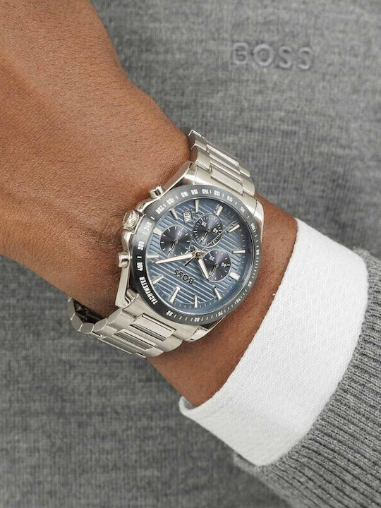 Boss Strike Ανδρικό Ρολόι Χρονογράφος Μπαταρίας με Ασημί Μεταλλικό Μπρασελέ kod 1514240