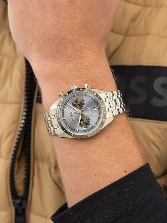 Boss Tourmaster Ανδρικό Ρολόι 41mm Μπαταρίας με Ασημί Μεταλλικό Μπρασελέ kod1514286