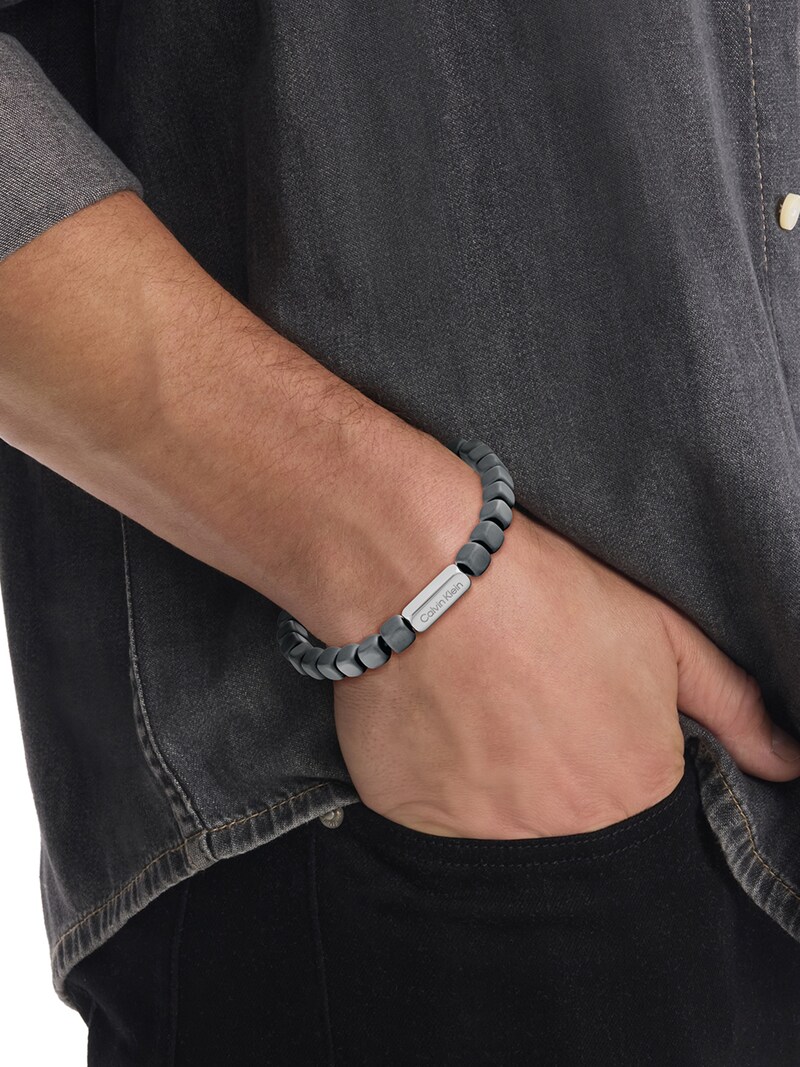 Ανδρικό βραχιόλι από ανοξείδωτο ατσάλι σε ασημί χρώμα και πέτρες, με το ομώνυμο λογότυπο του οίκου Calvin Klein.