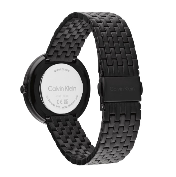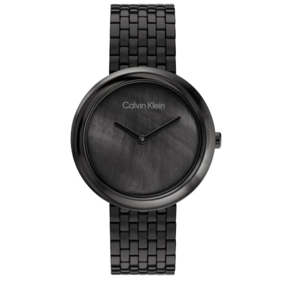 Γυναικείο ρολόι CALVIN KLEIN από ανοξείδωτο ατσάλι με μαύρο φίλντισι καντράν και μπρασελέ.