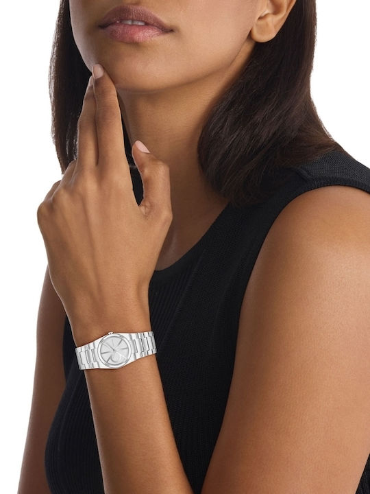 Calvin Klein Unite Γυναικείο Ρολόι 26mm Μπαταρίας με Ασημί Μεταλλικό Μπρασελέ SKU 25100126