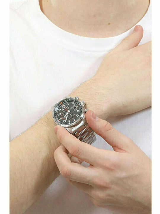 Citizen Ανδρικό Ρολόι 43mm Χρονογράφος Eco – Drive με Ασημί Μεταλλικό Μπρασελέ
