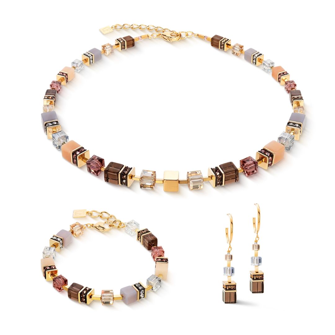 Αυτά τα σκουλαρίκια κρίκοι με ένα κομψό μενταγιόν αποτελούν μια αρμονική αλληλεπίδραση φωτός, σχήματος και χρώματος. Ζεστά κυβικά στοιχεία από καπνιστό χαλαζία και λαμπερούς κρυστάλλους Swarovski® συναντούν χρυσό ανοξείδωτο ατσάλι και προσθέτουν μια κομψή πινελιά σε κάθε εμφάνιση. Ιδανικά για εορταστικές περιστάσεις – ή ως δώρο που προέρχεται από την καρδιά.