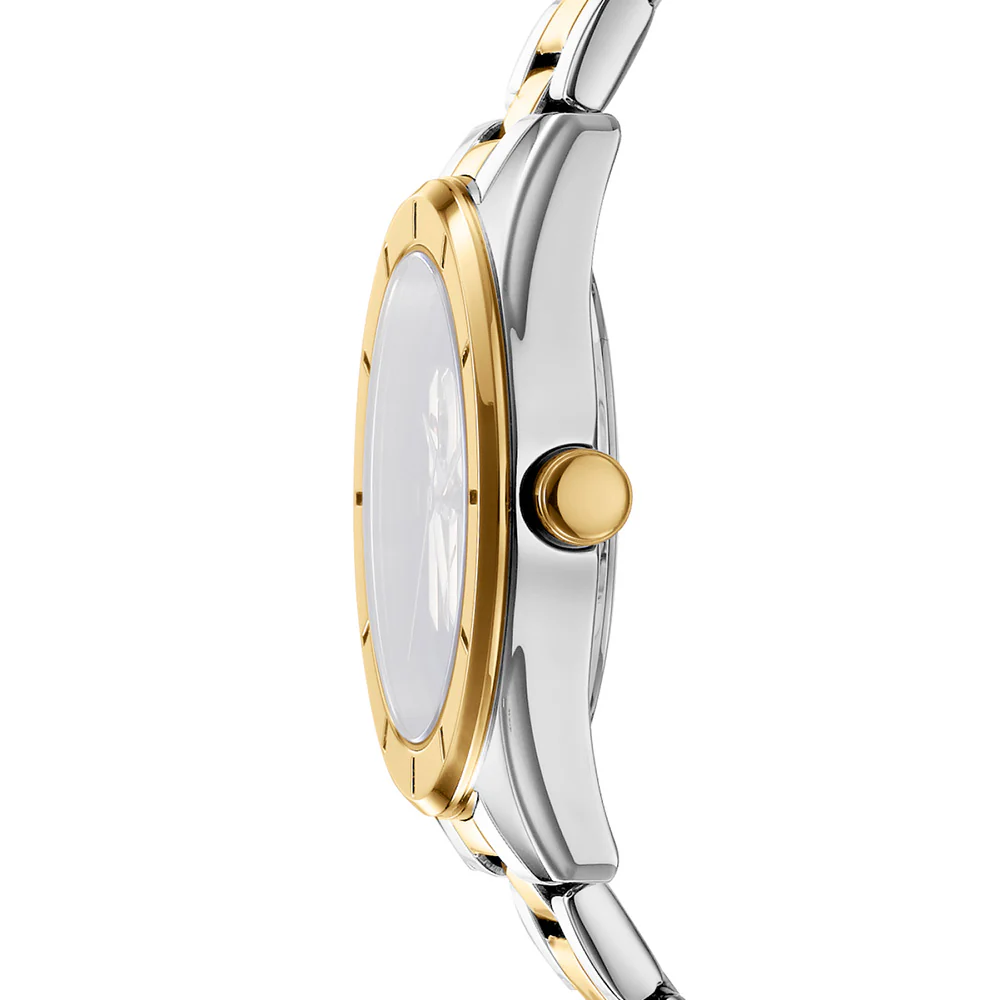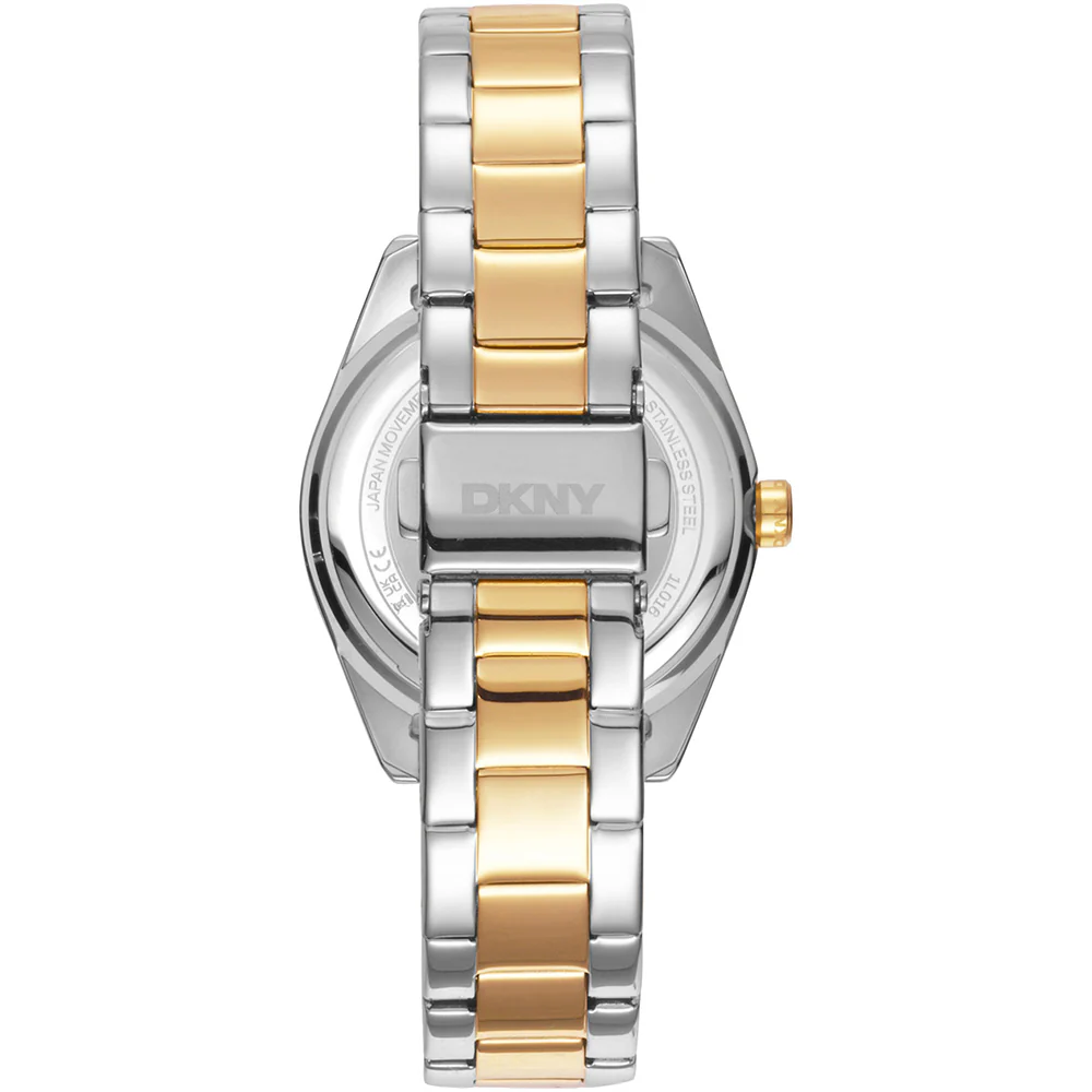 Γυναικείο ρολόι DKNY, από τη συλλογή Chambers Midi, με επιχρυσωμένο πλαίσιο και δίχρωμο μπρασελέ από ανοξείδωτο ατσάλι.
