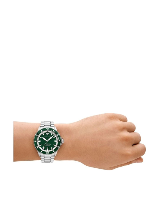Emporio Armani Ανδρικό Ρολόι Χρονογράφος Αυτόματο με Ασημί Μπρασελέ SKU AR60080