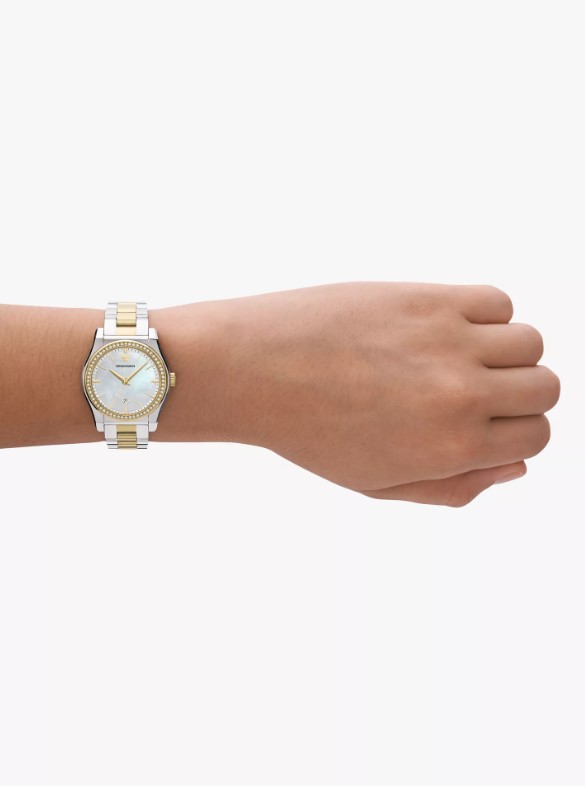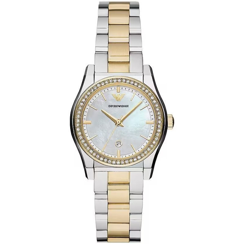 Γυναικείο ρολόι Emporio Armani από ανοξείδωτο ατσάλι με φίλντισι καντράν και ασημί-χρυσό μπρασελέ.