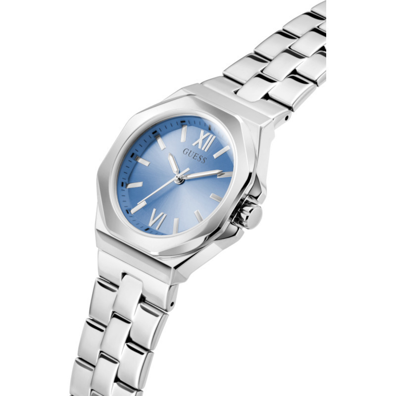 Γυναικείο ρολόι διαμέτρου 34mm με μηχανισμό QUARTZ ακριβείας. Έχει γαλάζιο καντράν με ασημένιους δείκτες και λεπτομέρειες. Η κάσα του είναι από ανακυκλωμένο ατσάλι με κρύσταλλο από ορυκτό κρύσταλλο ειδικής σκλήρυνσης. Έχει μπρασελέ από ανακυκλωμένο ατσάλι και κούμπωμα ασφαλείας. Είναι αδιάβροχο (5 ΑΤΜ).