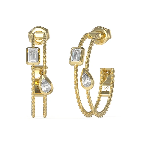 Guess Σκουλαρίκια Κρίκοι από Ατσάλι Επιχρυσωμένα με Πέτρες