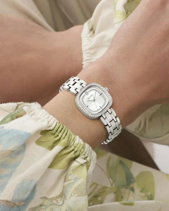 Η GUESS παρουσιάζει αυτό το όμορφο ωρολόι ακολουθώντας πιστά τις βασικές αρχές της σχεδιαστικής της παράδοσης: καλαισθησία, μοντέρνα γραμμή και υψηλή ποιότητα κατασκευής. Παράλληλα κάνει στροφή σε πρακτικές βιώσιμης και οικολογικής ανάπτυξης, καθώς η κάσα και το μπρασελέ του ρολογιού ειναι κατασκευασμένα από ανακυκλωμένο ατσάλι.