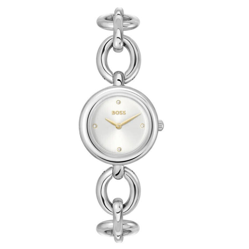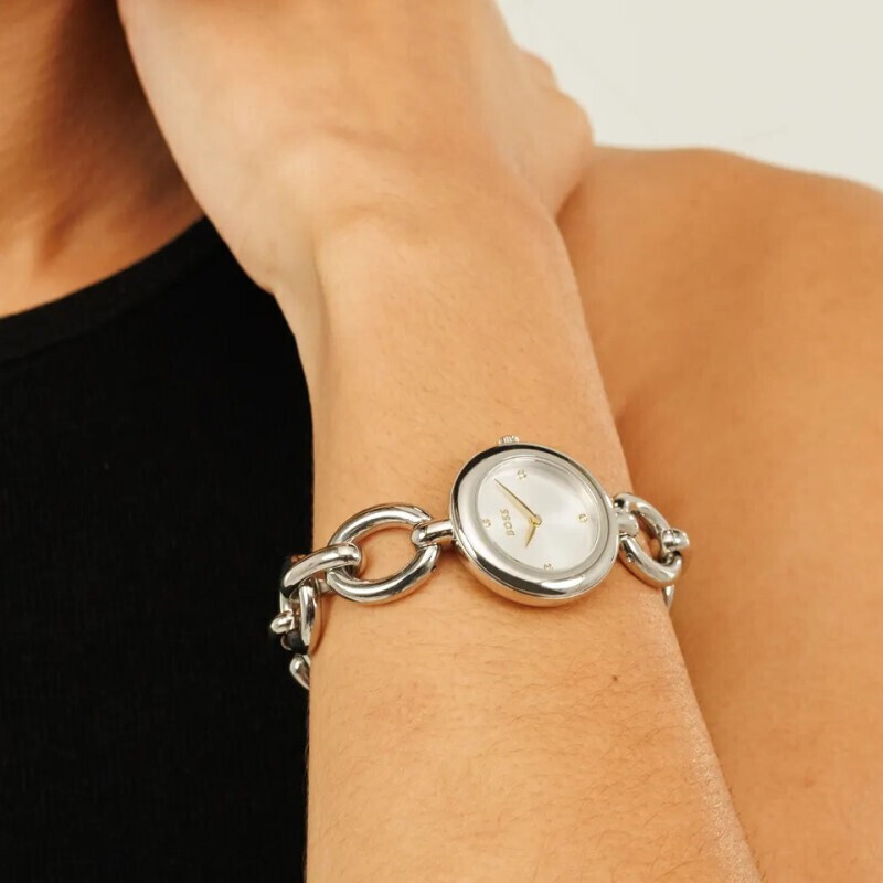 Γυναικείο ρολόι BOSS από ανοξείδωτο ατσάλι με ασημί καντράν και ασημί μπρασελέ.
