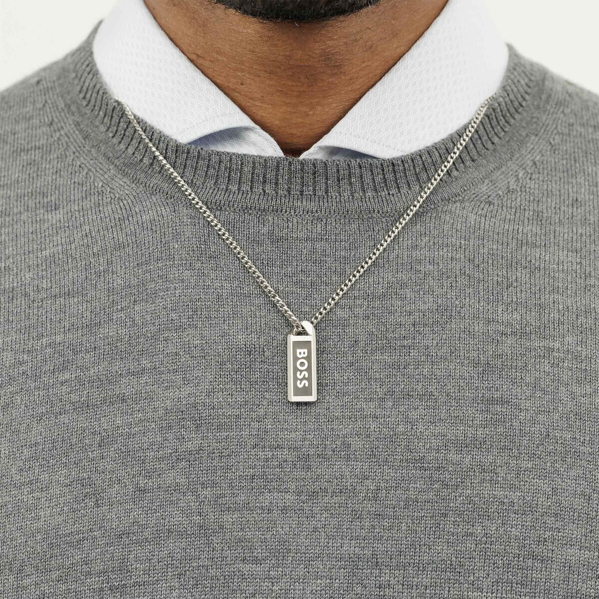 Αυτό το ανδρικό κολιέ από την Boss αναδεικνύει τη σύγχρονη κομψότητα με το διπλό σχέδιό του, που αποτελείται από δύο αλυσίδες που ενώνονται με έναν ενιαίο κούμπωμα. Κατασκευασμένο από ανθεκτικό ατσάλι, προσφέρει μοναδικό στυλ και αντοχή. Με μήκος 55.8 εκατοστά, είναι ιδανικό για να ολοκληρώσει κάθε επαγγελματική ή casual εμφάνιση.