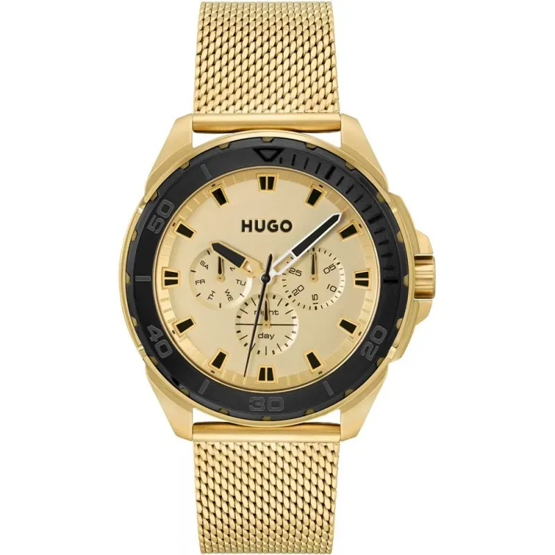 Ανδρικό ρολόι Hugo Boss από ανοξείδωτο ατσάλι με χρυσό καντράν και χρυσό μπρασελέ.