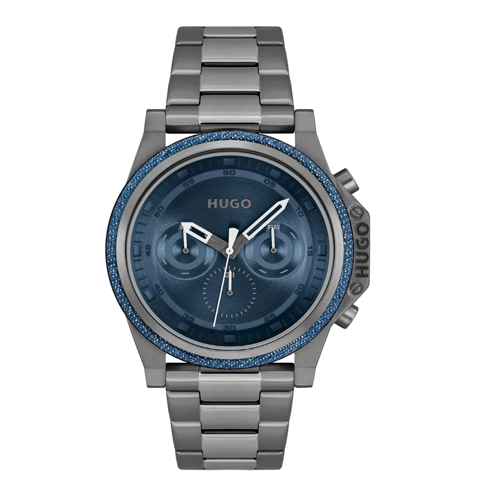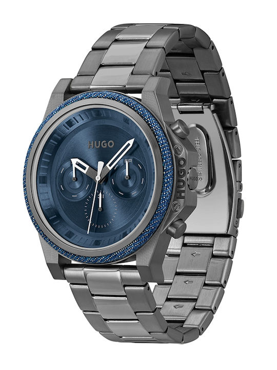 Hugo Boss Ανδρικό Ρολόι 46mm Χρονογράφος Μπαταρίας με Γκρι Μεταλλικό Μπρασελέ