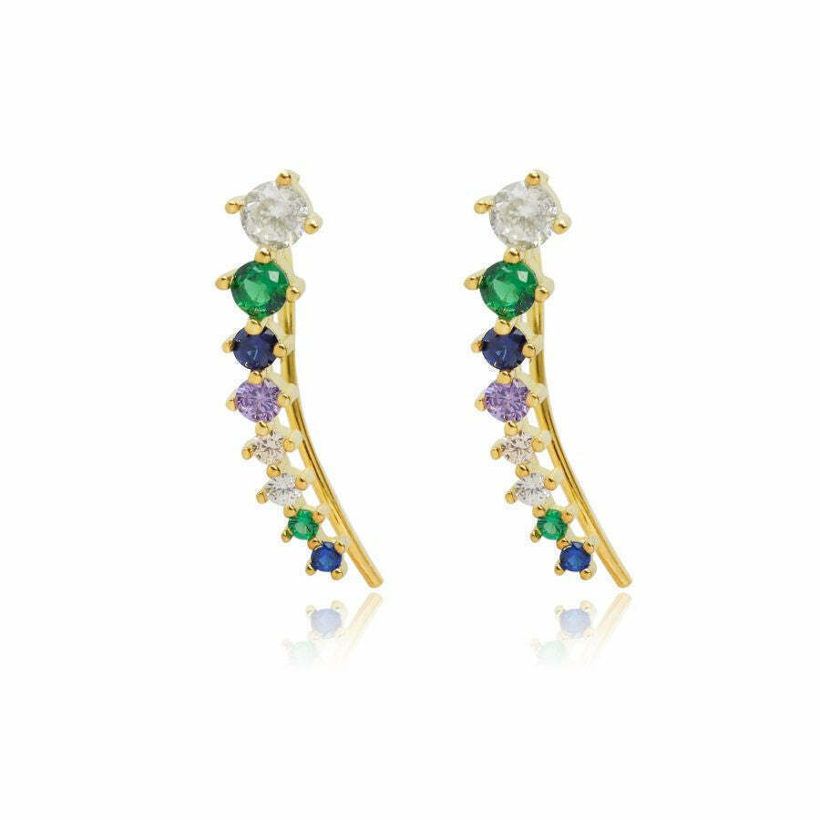 Η κατασκευή από ασήμι διασφαλίζει τη διάρκεια και την ποιότητα του προϊόντος, ενώ το κίτρινο χρώμα του υλικού ενισχύει την αισθητική τους. Το σχέδιο με πέτρες προσθέτει μία ιδιαίτερη και παιχνιδιάρικη διάσταση, κάνοντάς τα ιδανικά για κάθε περίσταση.