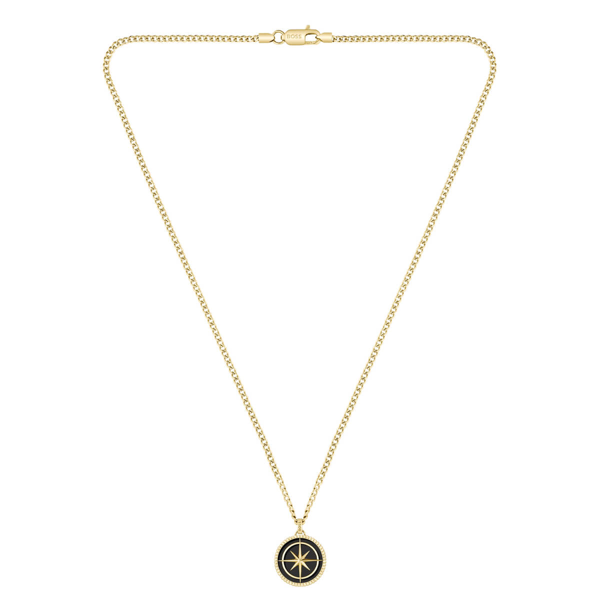 Ανδρικό Κολιέ “άγκυρα” Boss από επιχρυσωμένο ανοξείδωτο ατσάλι & μαυρο σμάλτο με λογότυπο BOSS.