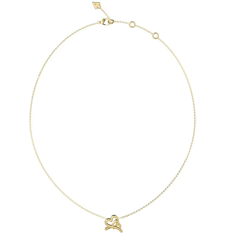 Γυναικείο κολιέ του επώνυμου οίκου Guess, της σειράς ”Love Bites”, όπου είναι κατασκευασμένο από ανοξείδωτο ατσάλι σε χρυσό χρώμα. Η αλυσίδα του διαθέτει κρικάκια για να μπορεί να φορεθεί στο επιθυμητό μήκος και κοσμείται στο κέντρο της με μια διπλή καρδιά με λουστρέ φινίρισμα. Φορέστε το μόνο του ή σε συνδυασμό και με άλλα κοσμήματα της εταιρείας!