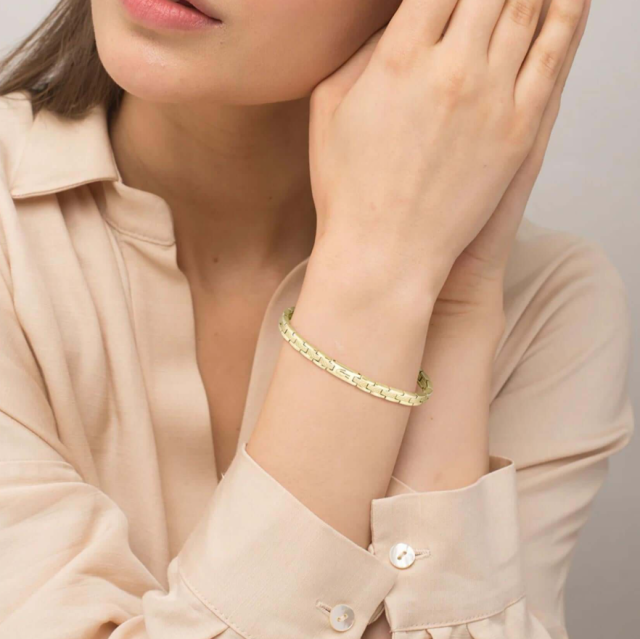 Ανακαλύψτε την κομψότητα και τη διαχρονική αίσθηση του βραχιολιού από ατσάλι, επιχρυσωμένο, που προορίζεται για τις γυναίκες. Το ειδικό φινίρισμα του προσφέρει μια εντυπωσιακή λάμψη και το καθιστά ιδανικό για κάθε περίσταση.