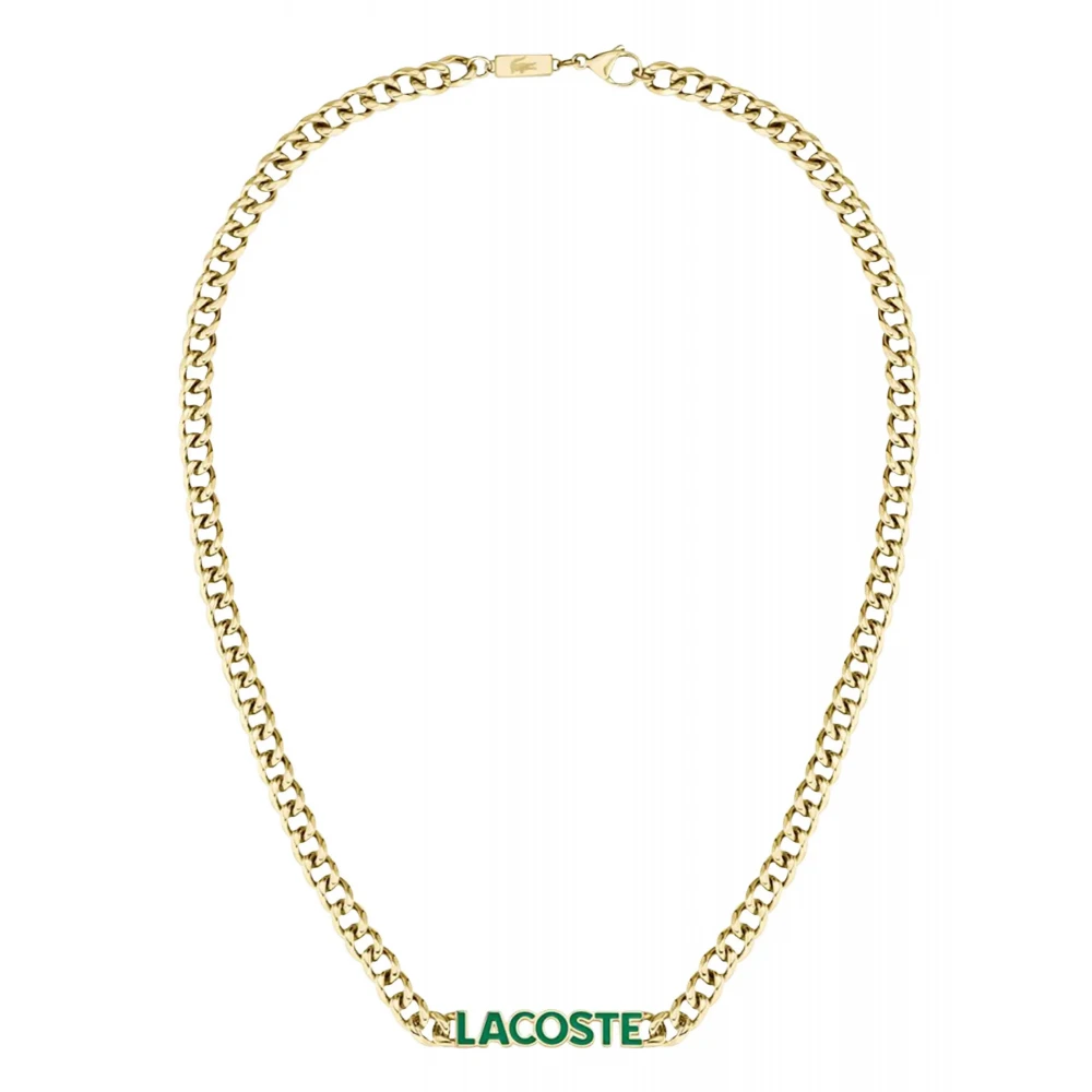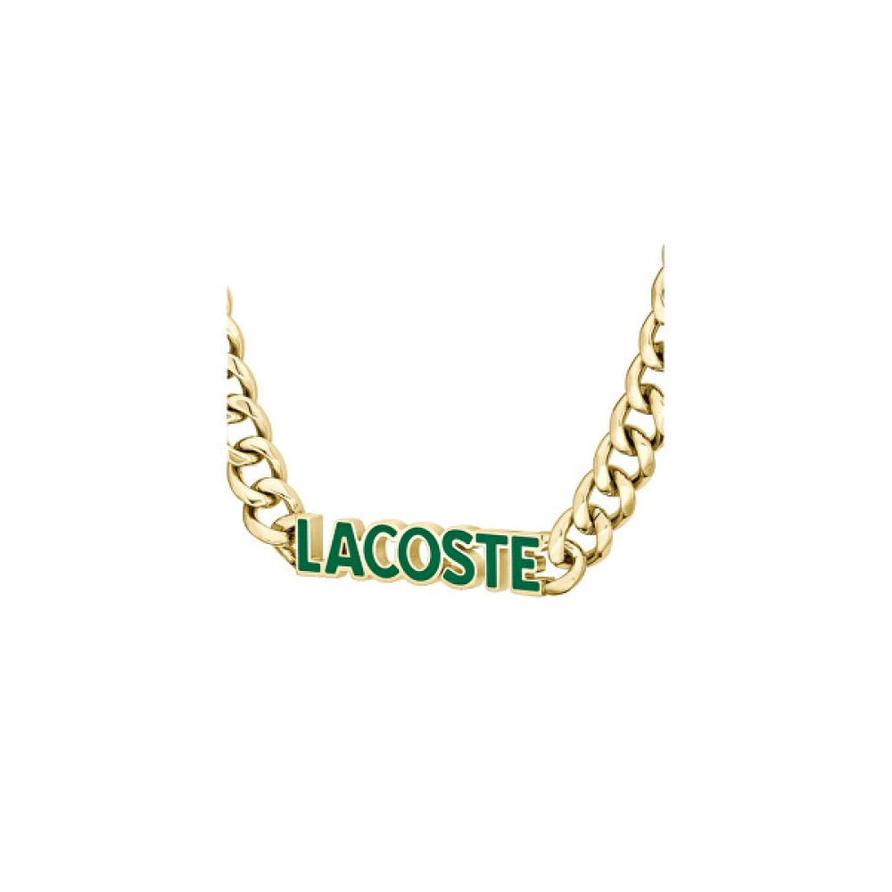 Κολιέ με υπογραφή της LACOSTE, με τα γράμματα του λογότυπου. Αυτή η αλυσίδα είναι κατασκευασμένη από ανοξείδωτο ατσάλι με λουστρέ φινίρισμα σε χρυσό χρώμα.