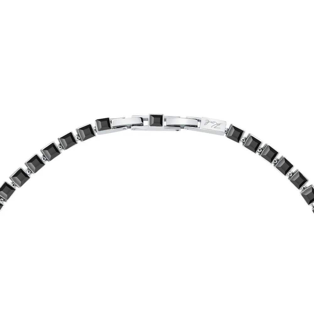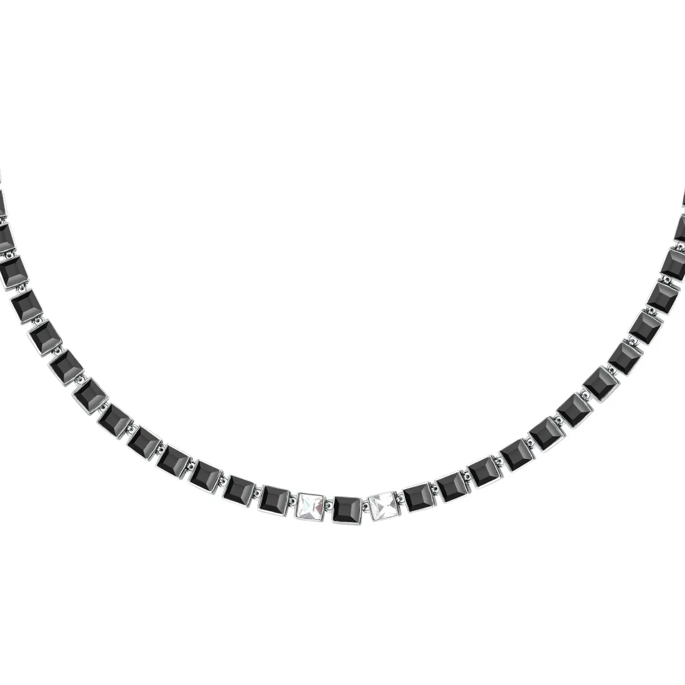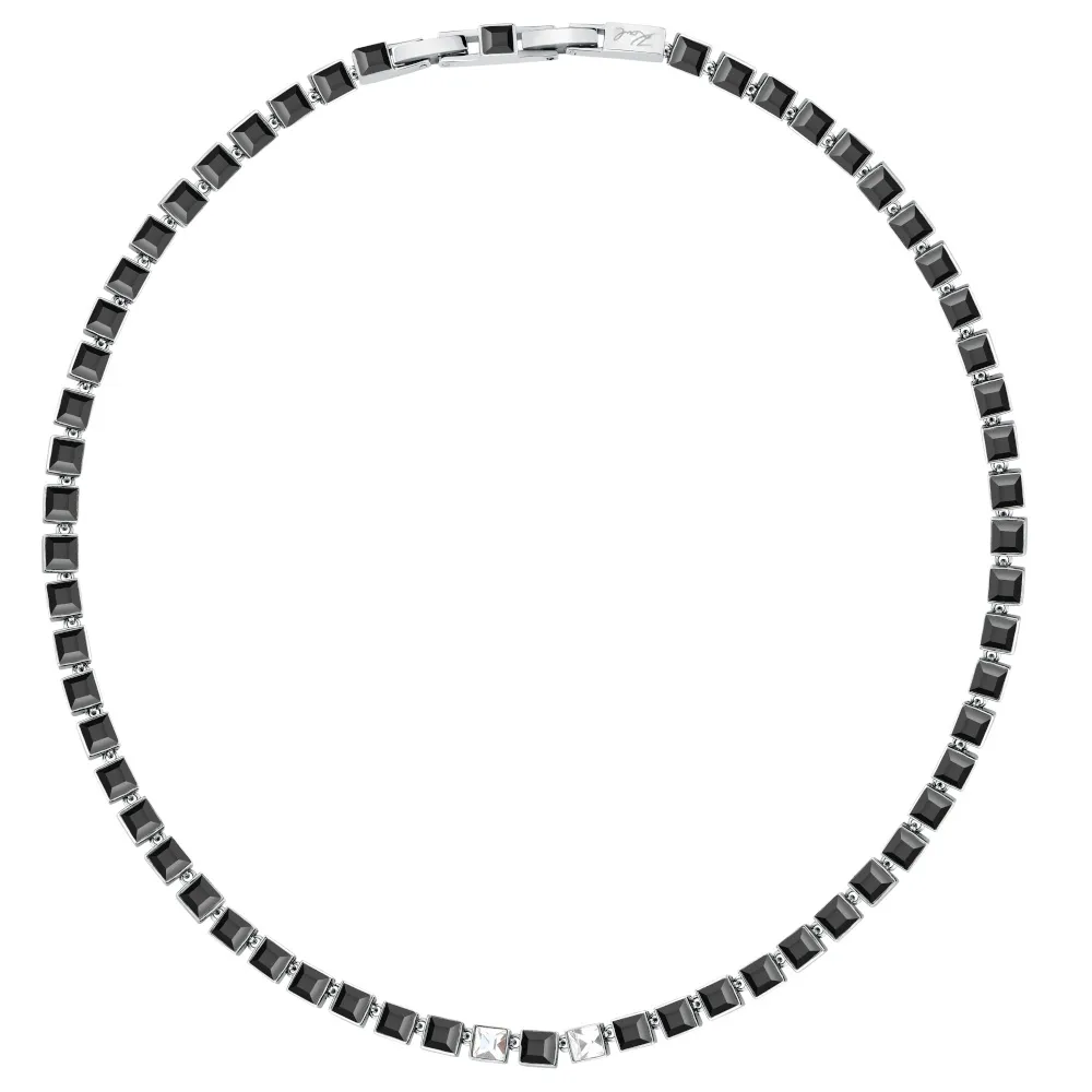Γυναικείο κολιέ του οίκου Karl Lagerfeld, από ανοξείδωτο ατσάλι σε ασημί χρώμα. Σε όλο του το μήκος κοσμείται από καστόνια με τετράγωνες μαύρες πέτρες ζιργκόν και δύο λευκά ζιργκόν στο κέντρο του. Ένα ιδιαίτερο κόσμημα που σίγουρα θα μαγνητίζει τα βλέμματα σε κάθε σας εμφάνιση!