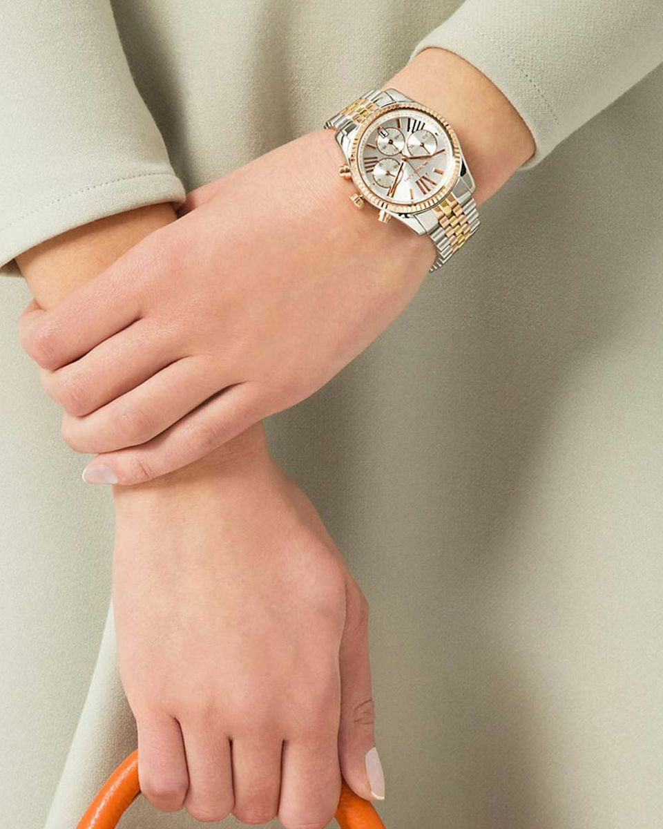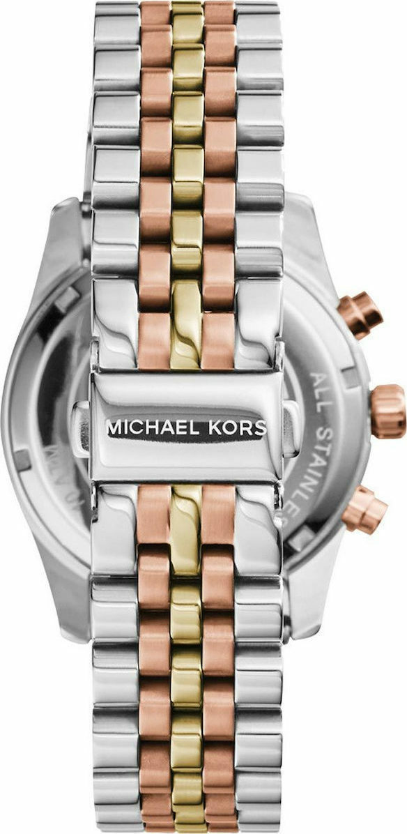 Γυναικείο ρολόι χρονογράφος της σειράς Lexington από την εταιρία Michael Kors. Διαθέτει μηχανισμό μπαταρίας, ο οποίος βασίζεται στην ηλεκτρική ενέργεια που παράγει η μπαταρία, με αποτέλεσμα να υπάρχει ακρίβεια και αντοχή. Είναι ανθεκτικό στο νερό έως 100 μέτρα και είναι ιδανικό για κολύμπι (10 atm).