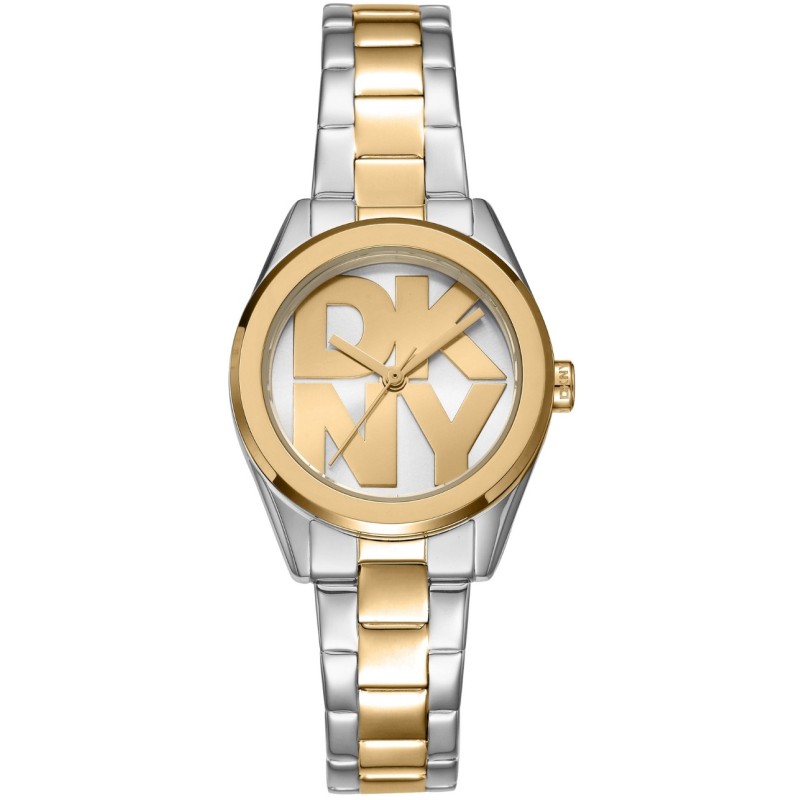 Ρολόι DKNY Logo Με Κίτρινο Χρυσό-Ασημί Ατσάλινο Μπρασελέ SKU DK1L145M0095