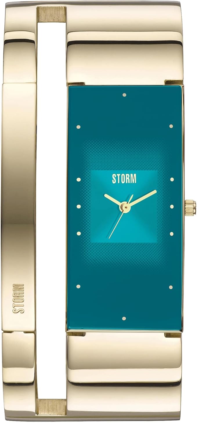 Ρολόι STORM ALVARA σε χρυσό γαλαζοπράσινο χρώμα, μηχανισμός χαλαζία, ανοξείδωτο ατσάλι, μεγάλο βραχιόλι, αυτορυθμιζόμενο λουράκι Easylink, κυρτή κάσα, χρησιμοποιημένα βιώσιμα υλικά