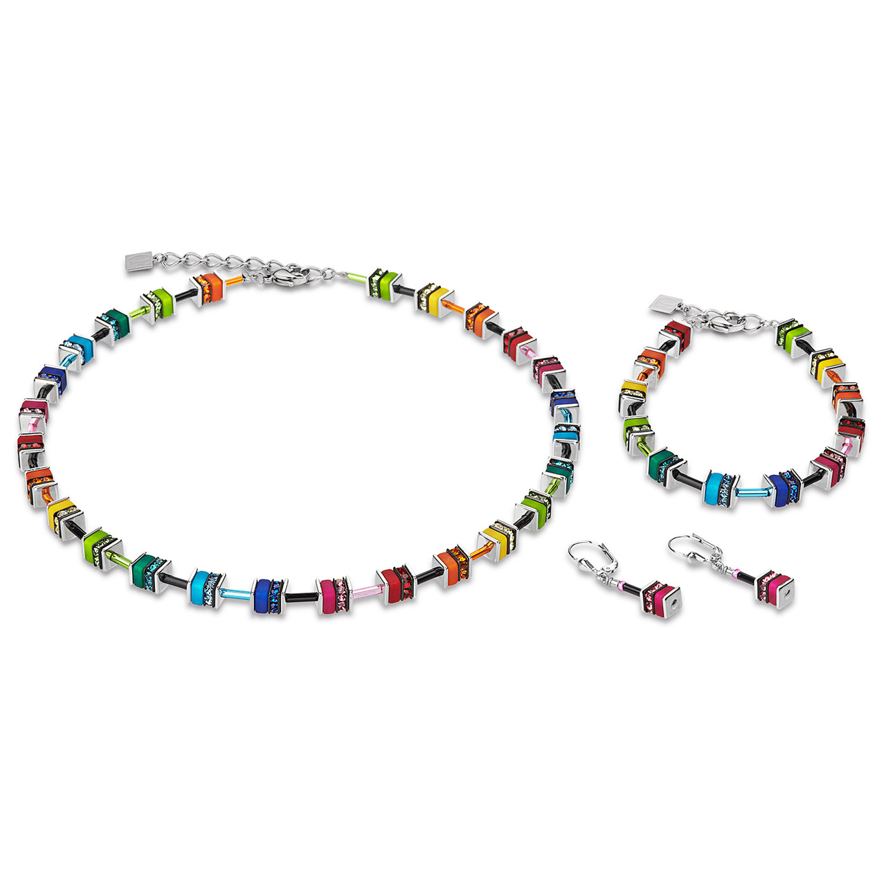 • Ένα όμορφα σχεδιασμένα σκουλαρίκια σε σχήμα ουράνιου τόξου με ροζ τριαντάφυλλα από τη συλλογή GeoCube από την Coeur de Lion Jewellery.