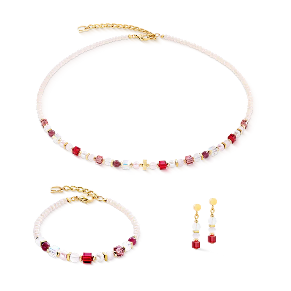 Τα σκουλαρίκια Princess Mix Rosé Blush γοητεύουν με τον εκφραστικό τους σχεδιασμό: τα στρογγυλά στοιχεία από ορεία κρύσταλλο και ροζ χαλαζία συναντούν εντυπωσιακούς κόκκινους κρυστάλλινους κύβους, δημιουργώντας μια μοντέρνα και ζωντανή εμφάνιση. Ο συνδυασμός απαλών παστέλ αποχρώσεων και έντονου κόκκινου προσθέτει μια φρέσκια, θηλυκή πινελιά σε κάθε ντύσιμο. Τοποθετημένα σε λαμπερό χρυσό ανοξείδωτο ατσάλι, αποτελούν το τέλειο αξεσουάρ – κομψά, διαχρονικά και ιδανικά ως δώρο για την Ημέρα του Αγίου Βαλεντίνου.
