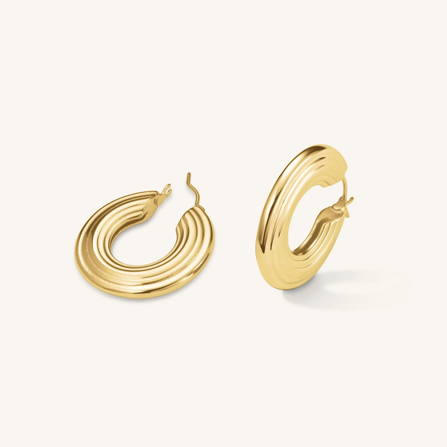 Σκουλαρίκια Rosefield Flat Striped Hoops Gold SKU JEFSG-J973