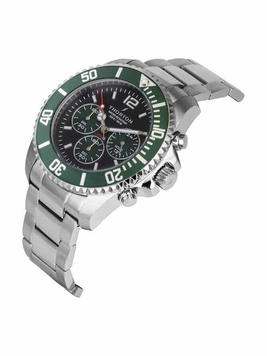 Thorton Ανδρικό Ρολόι 44mm Χρονογράφος Μπαταρίας με Ασημί Μεταλλικό Μπρασελέ