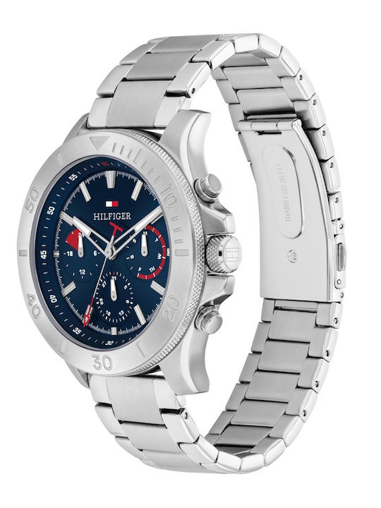 Tommy Hilfiger Bryan Ανδρικό Ρολόι 46mm Χρονογράφος Μπαταρίας με Ασημί Μεταλλικό Μπρασελέ