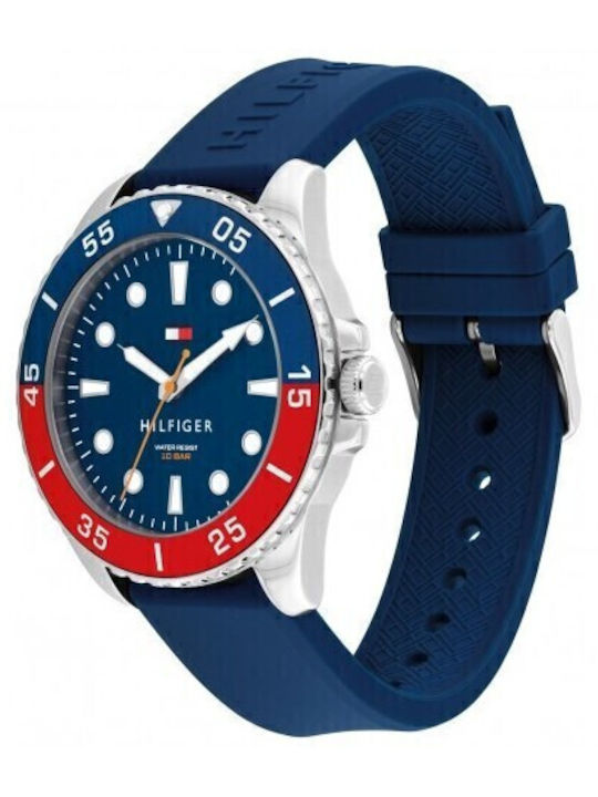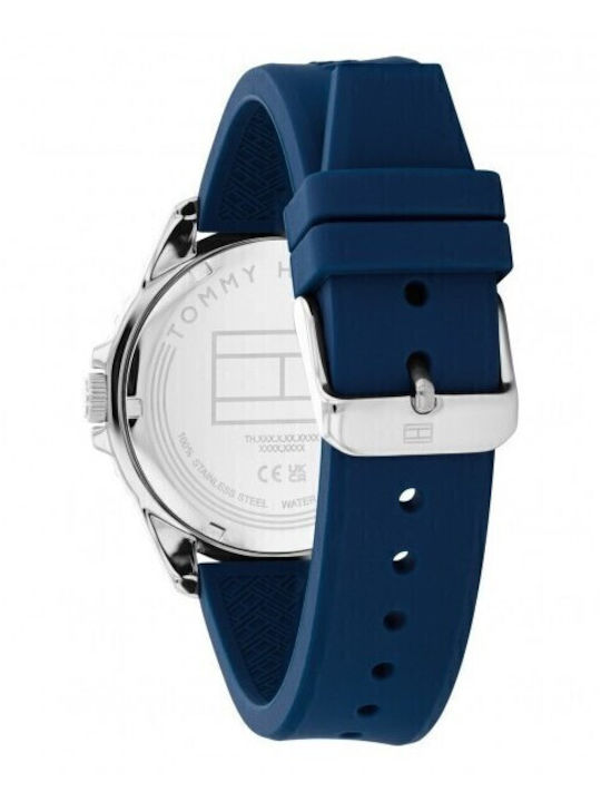 Ανδρικό ρολόι Tommy Hilfiger από ανοξείδωτο ατσάλι με μπλε καντράν και μπλε καουτσούκ λουράκι.