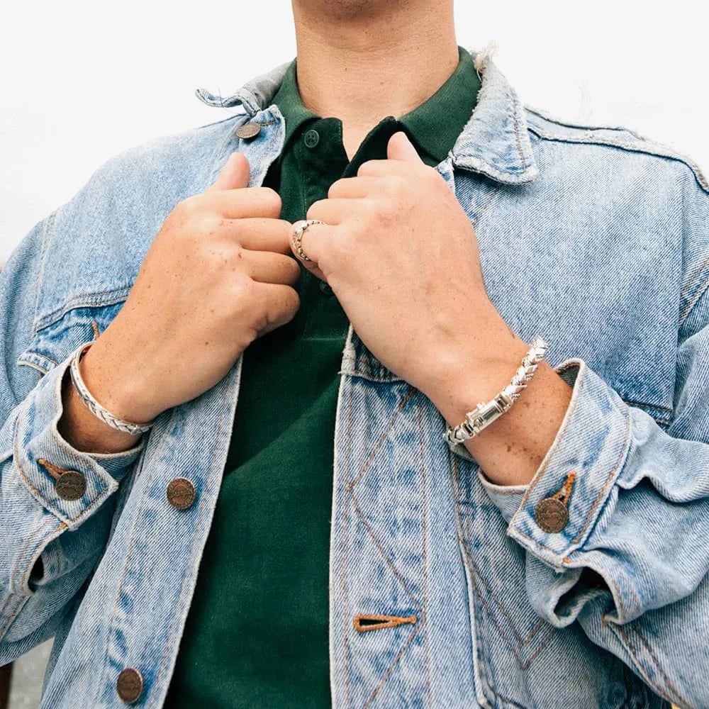 Το βραχιόλι George Texture, ένα εμβληματικό κομμάτι από τη δημοφιλή συλλογή George, προσθέτει μια καινοτόμο πινελιά στο γνώριμο βραχιόλι George χάρη στον μοναδικό του σχεδιασμό. Αυτό το ευέλικτο κομμάτι ταιριάζει με όλα και ταιριάζει σε όλους. Κατασκευασμένο από ανακυκλωμένο ασήμι, προσδίδει μια πολυτελή εμφάνιση. Σχεδιασμένο στο Άμστερνταμ και σχολαστικά κατασκευασμένο στη Νοτιοανατολική Ασία, αυτό το βραχιόλι ενσαρκώνει την κατασκευαστική δεξιοτεχνία και το στυλ. Στο Buddha to Buddha δεν αγοράζετε απλώς κοσμήματα, τα χαρίζετε. Σε ποιον θα είναι αυτό το δώρο; Σε εσάς ή σε κάποιον άλλο ξεχωριστό;