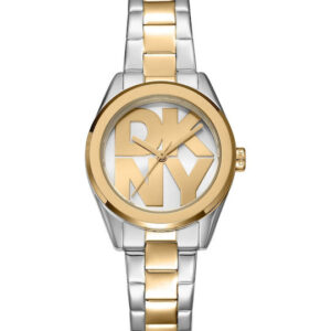 Ρολόι DKNY Logo Με Κίτρινο Χρυσό-Ασημί Ατσάλινο Μπρασελέ SKU DK1L145M0095
