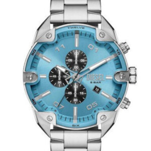 Diesel Spiked Ανδρικό Ρολόι 49mm Χρονογράφος Μπαταρίας με Ασημί Μεταλλικό Μπρασελέ SKU DZ4655